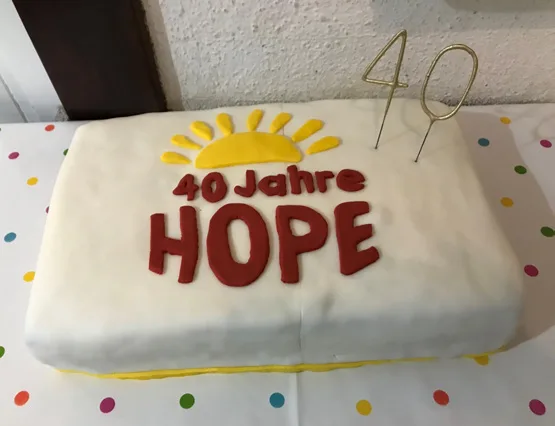 Über 70 Gäste nahmen am ersten OPEN Jubiläumsanlass teil und genossen neben der Torte die feinen Flammkuchen oder malten am Jubiläumsbild mit. Unser Auszubildender gestaltete in seiner Abschlussarbeit mit den Bewohnenden kunstvolle Stühle, welche am Fest im Rahmen einer kleinen Auktion alle erfolgreich versteigert wurden. Das entstandene Jubiläumsbild kann im HOPE Restaurant während den täglichen Öffnungszeiten oder auf dem Titelbild dieser Jubiläumsausgabe bewundert werden.